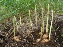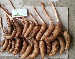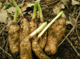 키 30~100cm쯤 외줄기로 곷게 자라고 뿌리는 고구마처럼 덩이졌다.