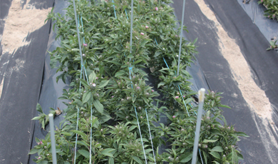 - 2월 중순경에 200구 연결 포트에 씨앗을 5립씩 뿌려 하우스에서 모를 기른다. 씨를 뿌린 후 10일경에 씨앗이 발아되어 본잎이 2매 정도 나왔을 때 연결 포트 1구당 3주가 되도록 솎음작업을 한다.